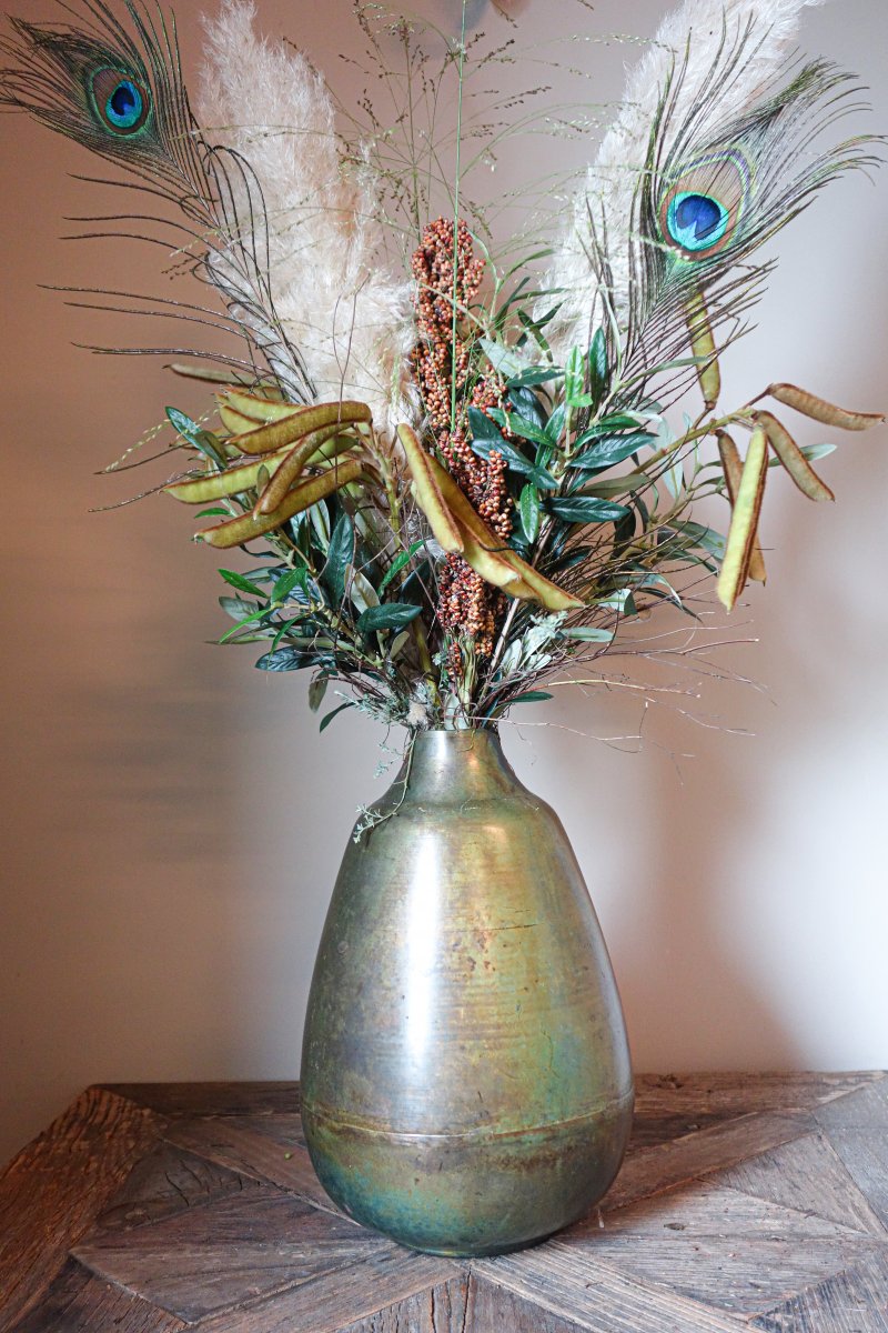 Droogboeket met pauwenveren